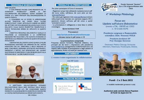 RAZIONALE DEL CONGRESSO La flebologia attuale parte da consolidate esperienze e basi scientifiche . Nel corso degli anni nuove strategie sono nate da approfondimenti nel campo della genetica e dalla scoperta delle…27 Giugno 2022 -