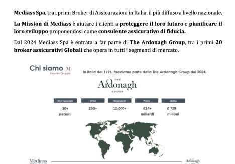 Mediass Spa, tra i primi Broker di Assicurazioni in Italia, il piùdiffuso a livello nazionale. La Mission di Mediass è aiutare i clienti a proteggere il loro futuro e pianificare il loro…13 Febbraio 2025 -