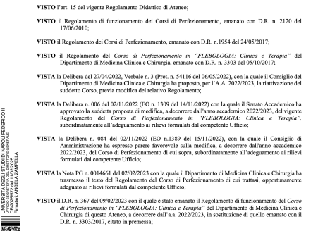 Direttore del corso: Prof. Gennaro Quarto ANNO ACCADEMICO 2020/2021 E' in corso di pubblicazione il bando per l'ammissione al Corso di Perfezionamento Universitario in FLEBOLOGIA: Clinica e Terapia Per ulteriori informazioni: https://www.unina.it/didattica/post-laurea/perfezionamento…23 Novembre 2020 -