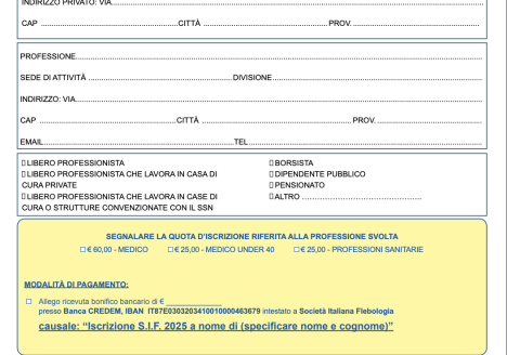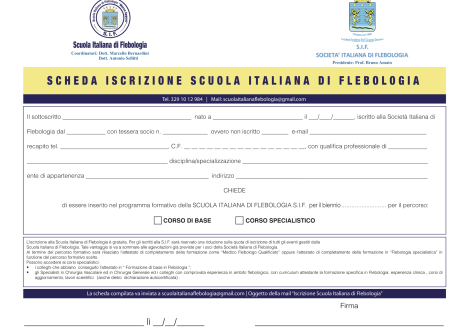 Gentili Soci, con la presente desideriamo sottoporre alla Vostra cortese attenzione una dettagliata presentazione della Scuola Italiana di Flebologia “Marco Apperti”, istituita nel 2014 su iniziativa del Prof. Marco Apperti, allora Presidente della…7 Maggio 2025 -